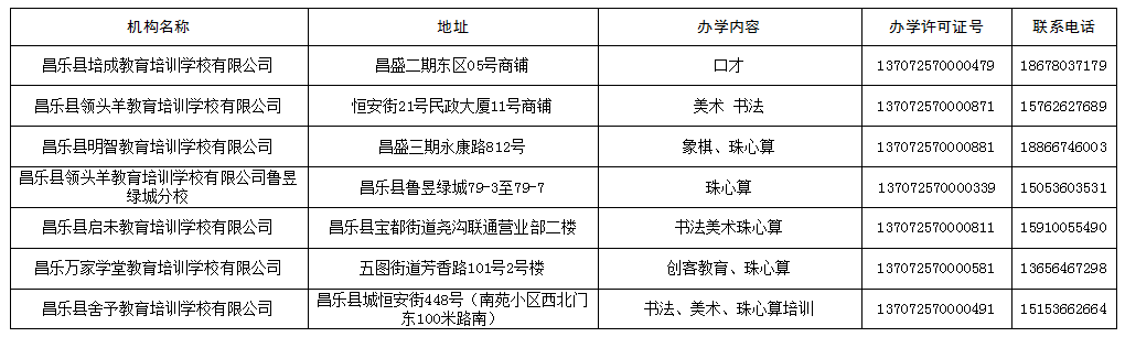 名单实行动态管理,定期发布,欢迎各位家长监督、举报培训机构的违规行为或非法培训机构,监督举报电话: 6272676 6221826