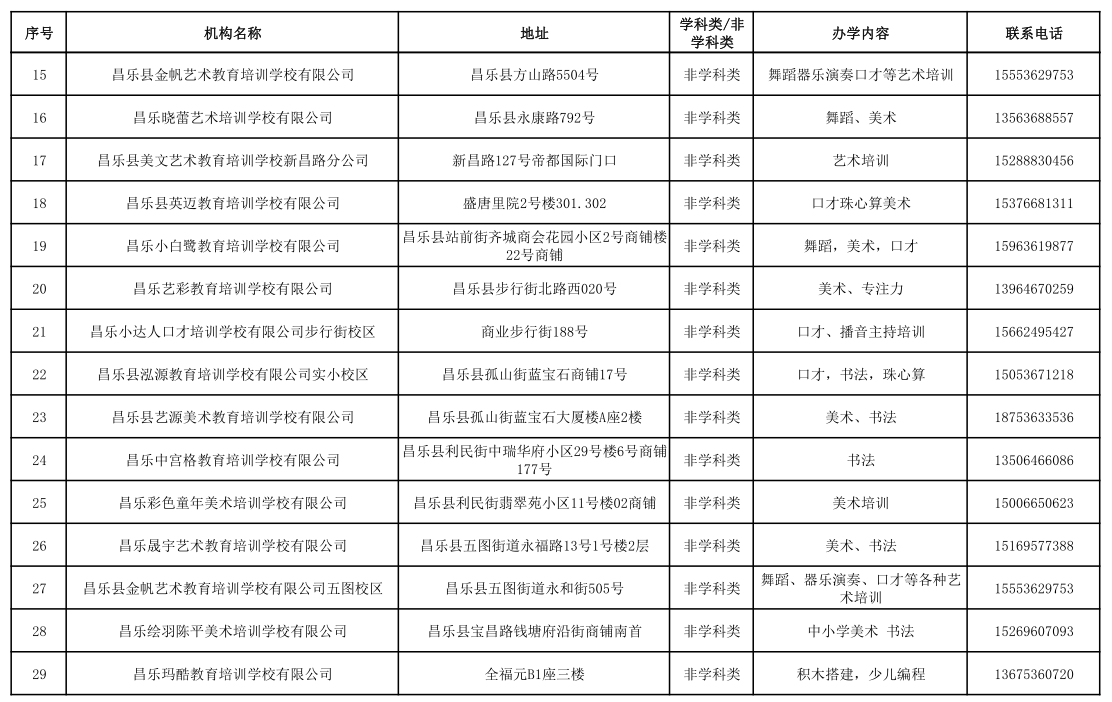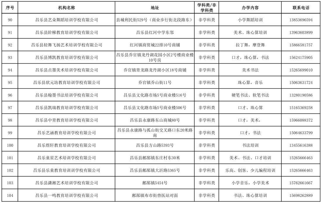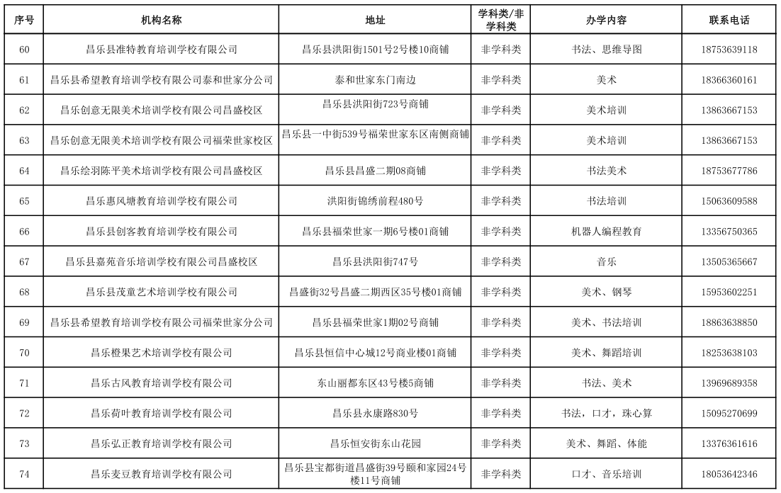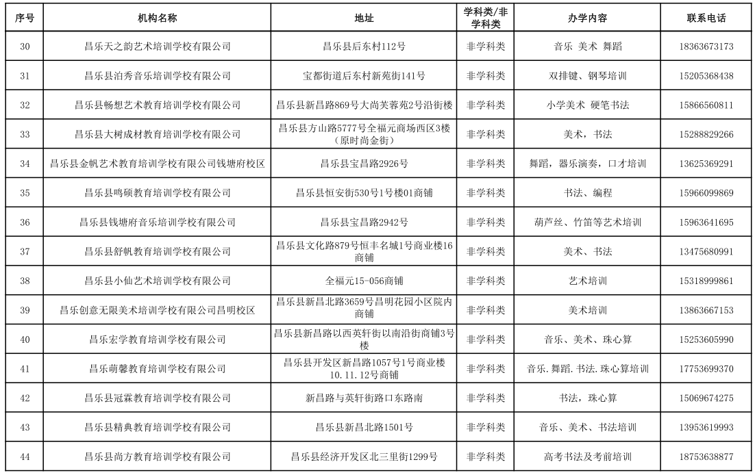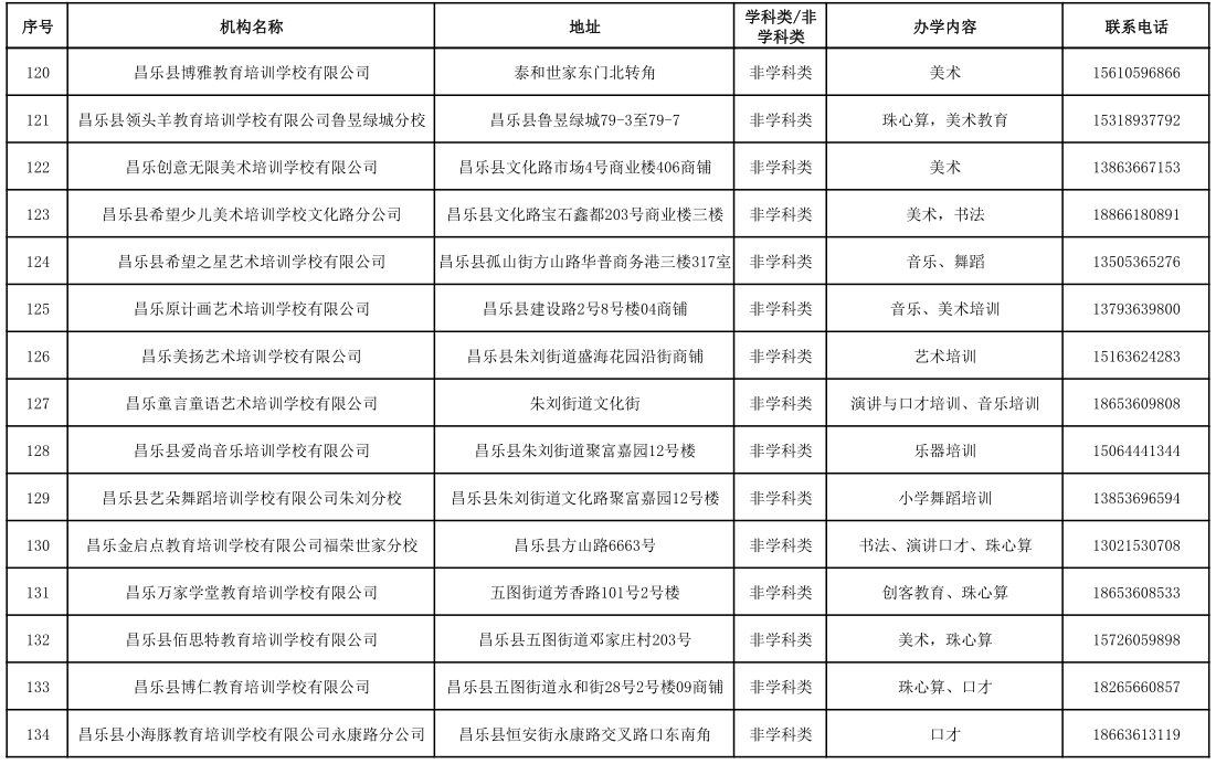 昌乐县校外培训机构黑白名单(2023年1月)