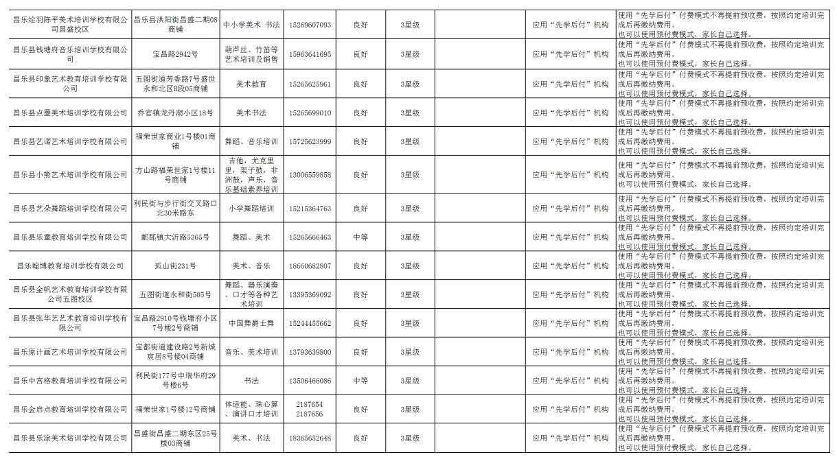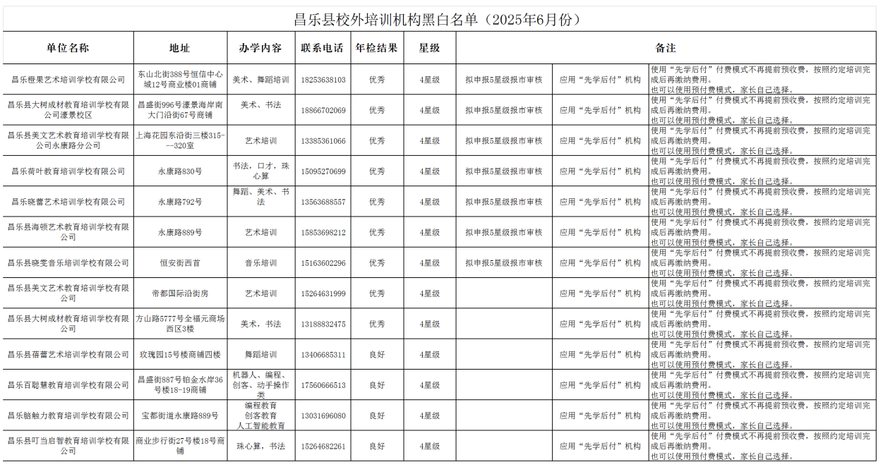 昌乐县校外培训机构黑白名单(2025年6月份)