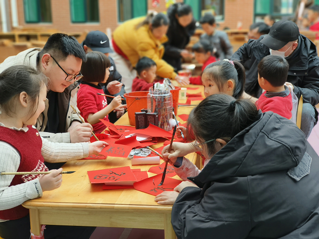 活动现场,各区域精心布置,处处洋溢着节日氛围。剪纸区里,孩子们手持剪刀,在红纸上勾勒出灵动的生肖马、绽放的窗花,指尖跃动间传承着“千剪不断,万剪不断”的民间技艺;投壶纳福区,孩子们屏息凝神,将箭矢投入壶中,每一次命中都引来阵阵欢呼,寓意“投中福气,纳得吉祥”;捏面人区,非遗传承人现场示范,孩子们揉、捏、搓、压,将面团化作憨态可掬的小动物,感受“指尖上的艺术”魅力;猜灯谜区,五彩灯笼下悬挂着趣味谜题,孩子们或低头沉思,或热烈讨论,在解谜中领悟汉字文化的精妙;写福字区,孩子们挥毫泼墨,一撇一捺间书写对新年的美好期许;拓印区,孩子们用拓包蘸取朱砂,在宣纸上轻轻拍打,一幅幅寓意“福气满盈”的拓印作品跃然纸上。