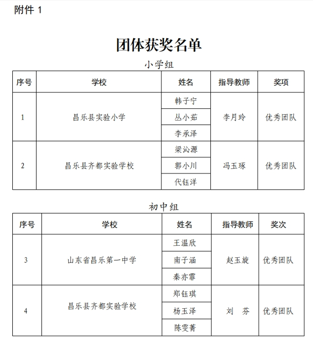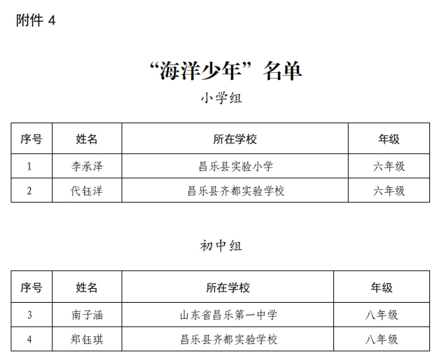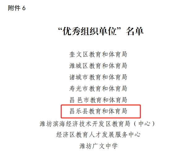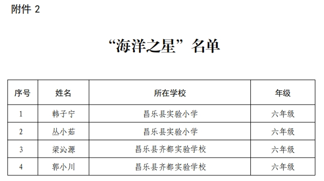 在潍坊市中小学生海洋意识和素养展示活动中,我县4支队伍全部获得优秀团队,4名学生被评为“海洋之星”,4名学生被评为“海洋科普达人”,4名学生被评为“海洋少年”,3名教师被评为“优秀指导老师”,昌乐县教育和体育局被评为“优秀组织单位”。