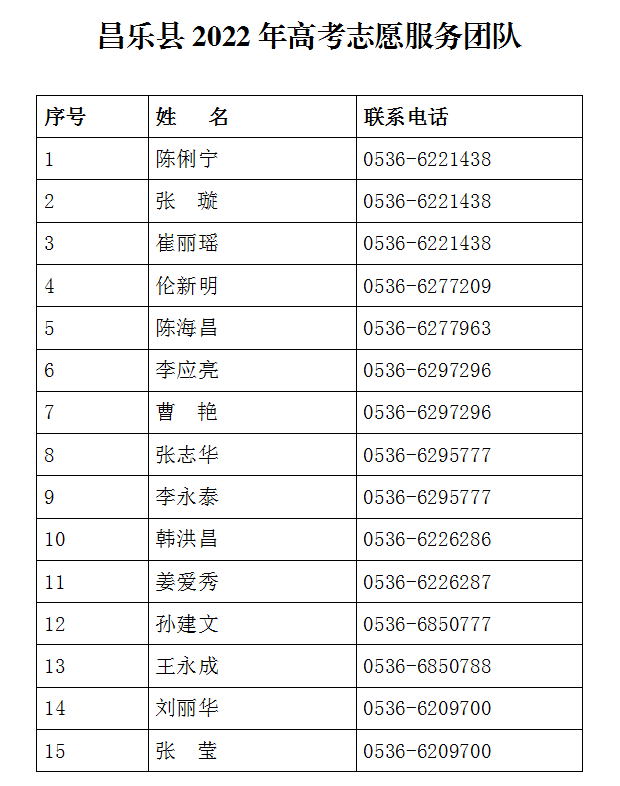 关于成立昌乐县高考志愿咨询服务团队的通知