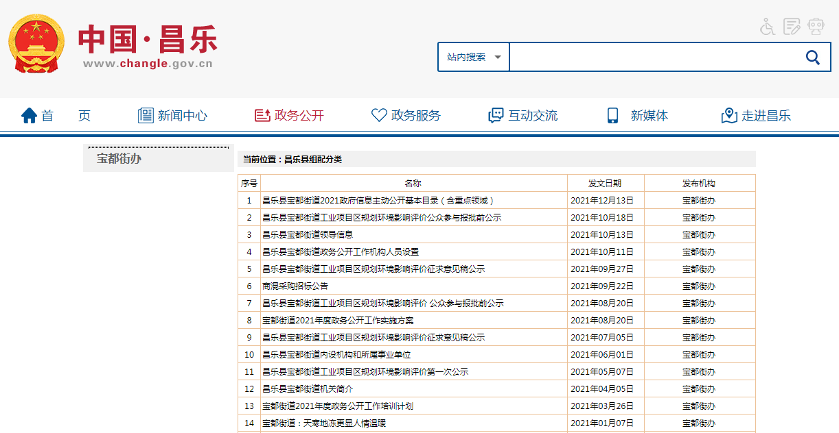 昌乐县宝都街道2021年政府信息公开工作年度报告