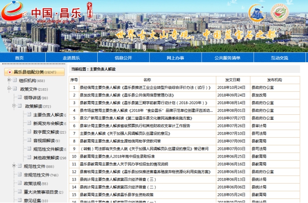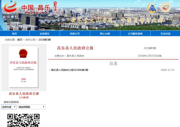 昌乐县人民政府2018年政府信息公开工作年度报告