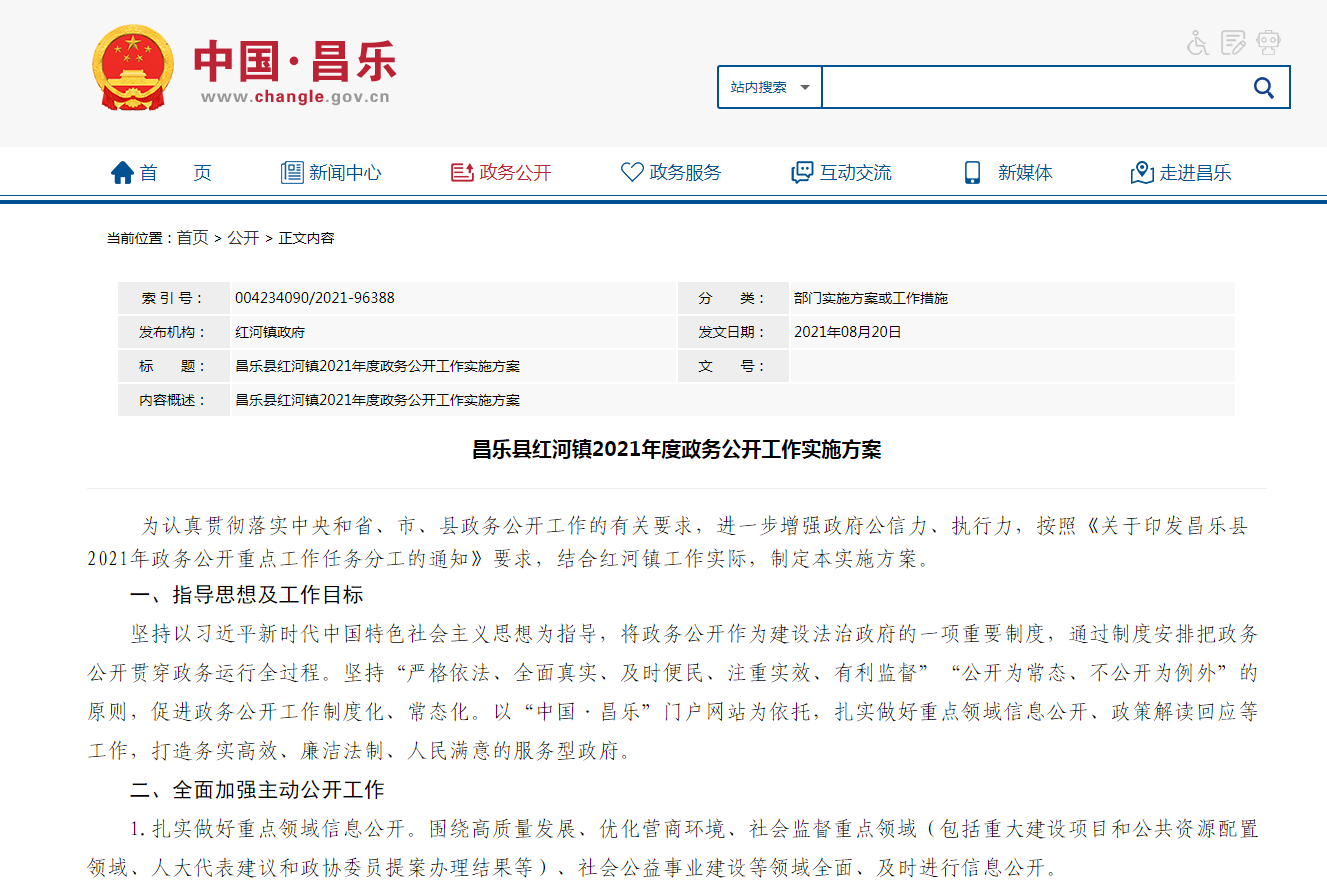 昌乐县红河镇2021年政府信息公开工作年度报告