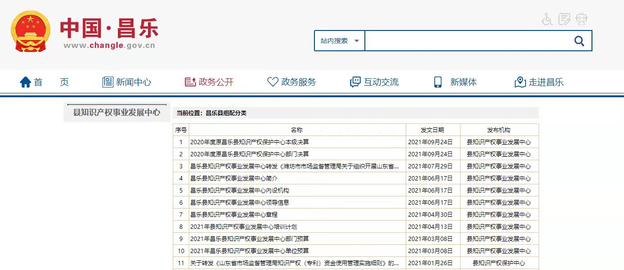 昌乐县知识产权事业发展中心2021年政府信息公开工作年度报告