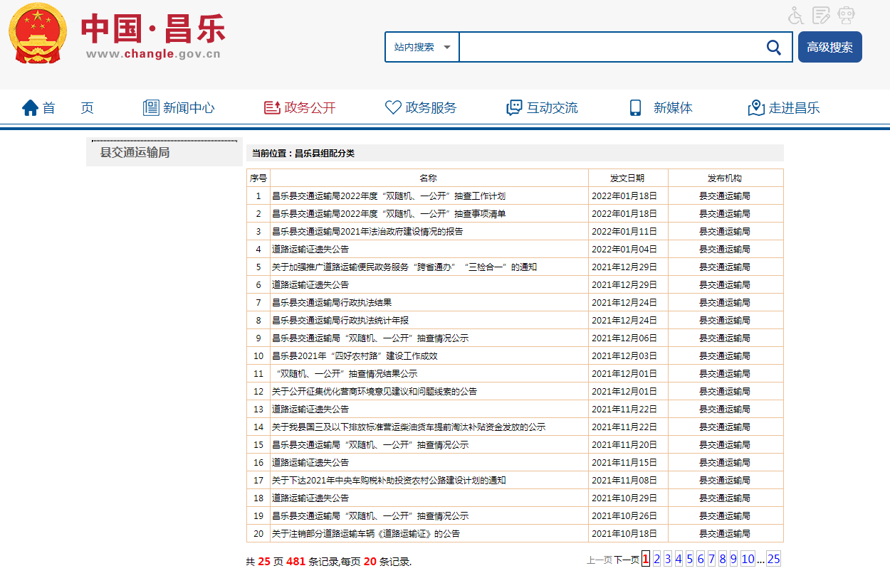昌乐县交通运输局2021年政府信息公开工作年度报告