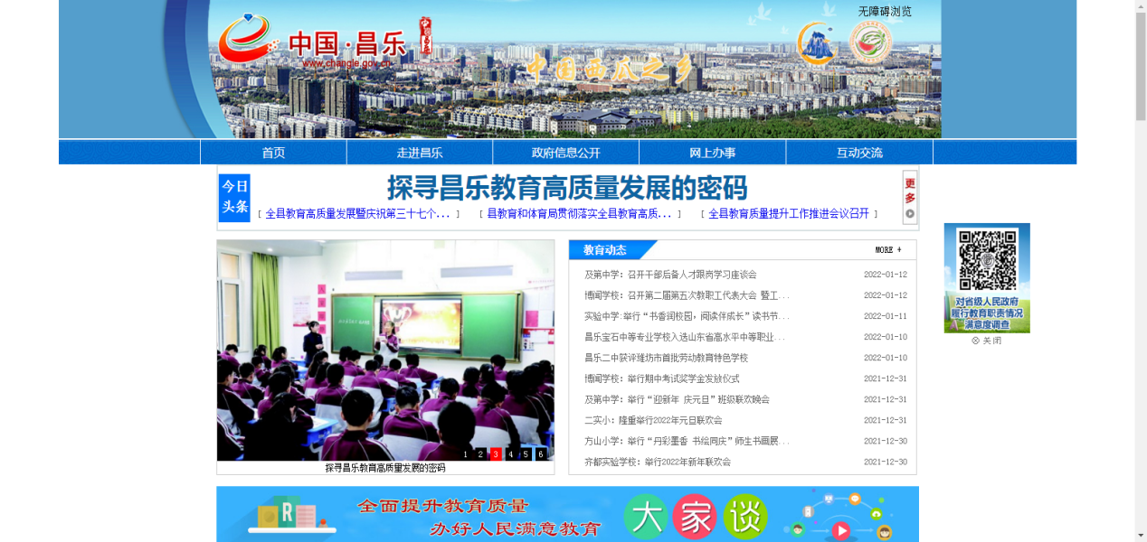 1.强化昌乐教育信息公开网上平台建设。依托政府网站建设管理,及时准确发布昌乐教育发展的相关政策信息,并有专人负责信息审核发布工作。