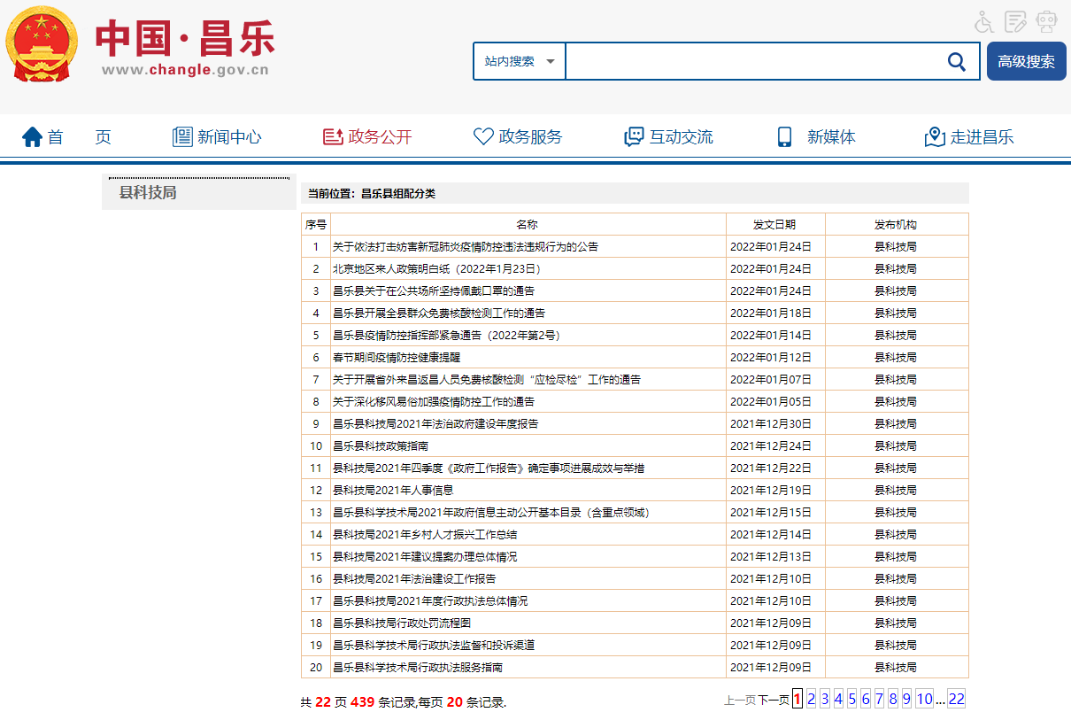 昌乐县科学技术局2021年政府信息公开工作年度报告