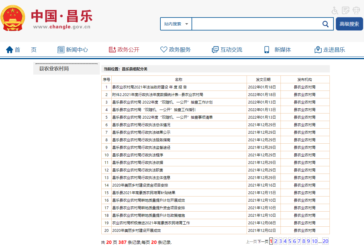 昌乐县农业农村局2021年政府信息公开工作年度报告