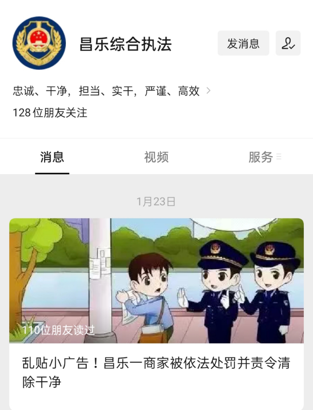 1.提升大力拓展微信应用。以微信公众号为阵地,打造昌乐综合执法微信订阅号。主要刊发推送工作动态及相关通告信息63条,重点信息阅读最多突破1.7万条。