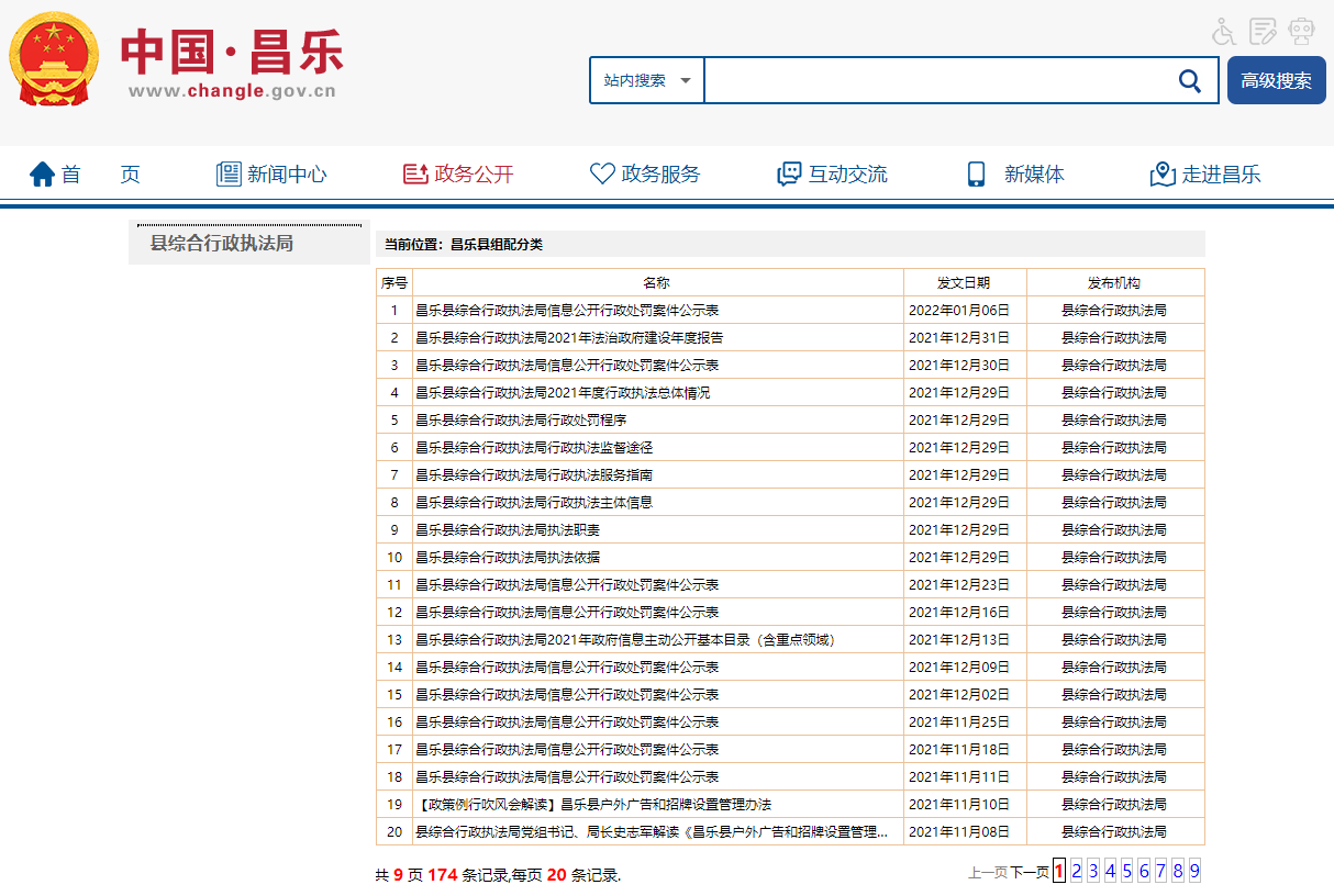 昌乐县综合行政执法局2021年政府信息公开工作年度报告