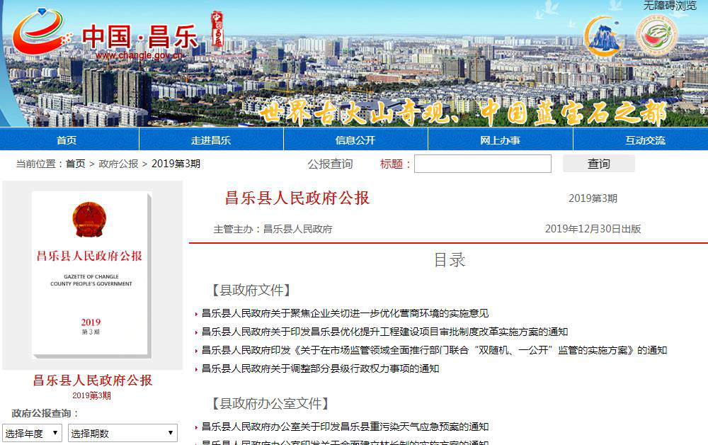 昌乐县人民政府办公室2019年政府信息公开工作年度报告