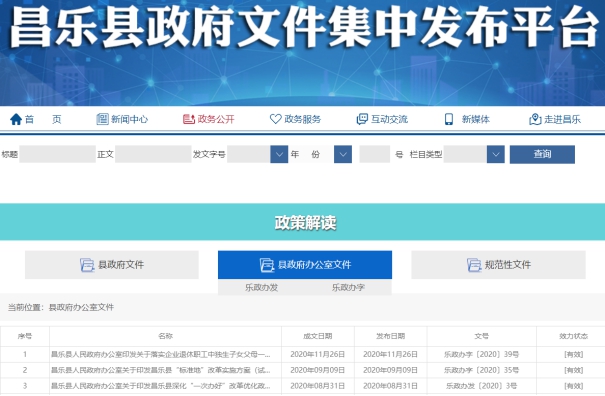 一是扎实做好政府文件和会议公开。在中国昌乐政府门户网站政府信息公开专栏建立“县政府文件集中发布平台”,分类发布县政府文件、县政府办公室文件、规范性文件,每个文件都标明文件名称、成文日期、发布日期、文号和效力状态,全年累计发布以县政府、县政府办公室名义印发的政策性文件、规范性文件38件。设置专题公开县政府全体会议、常务会议、专题会议情况,及时公开相关议定事项并进行解读,全年累计公开县政府常务会议12次,并同步公开了邀请利益相关方、公众代表、媒体等列席会议情况。二是及时更新政府信息主动公开基本目录。根据实际变化情况,更新了主动公开基本目录,进一步明确“五公开”的主体、内容、时限、方式等,对重点领域信息公开内容进行了进一步丰富。三是政策解读更加及时、方式多样。坚持政策性文件与解读方案、解读材料同步,所有政策性文件全部进行了解读,解读的形式包含主要负责人解读、政策简明问答、图文解读、音频解读等。全年累计公开政策解读信息80余条。