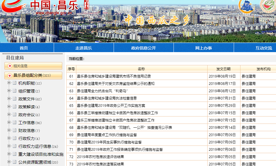 昌乐县住房和城乡建设局2019年度政府信息公开工作年度报告