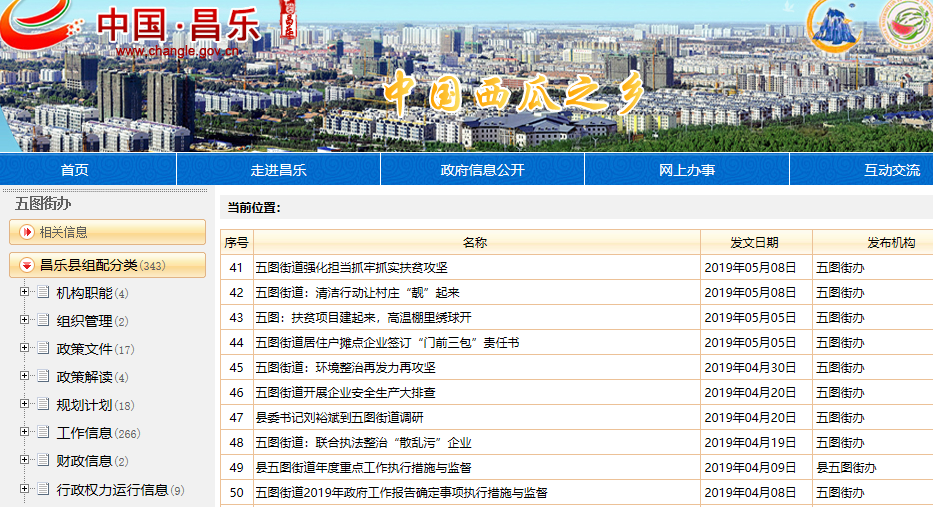 五图街道2019年度政府信息公开工作报告