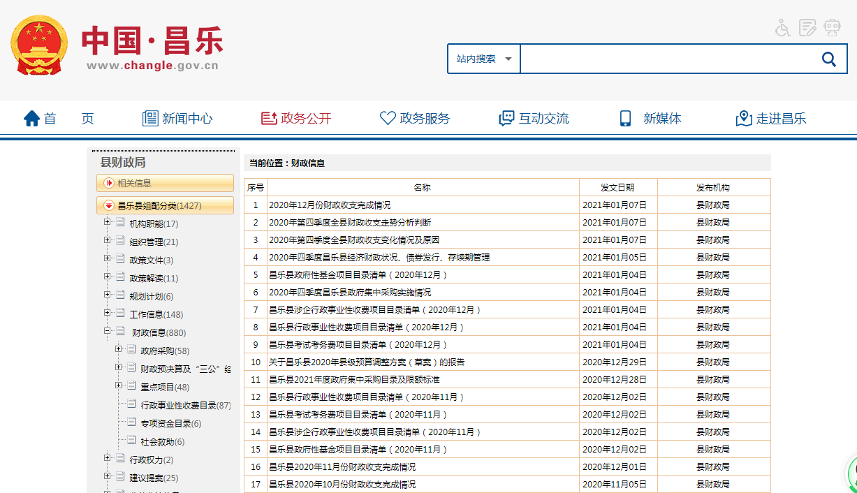 3.公开形式。一是互联网公开方式,在“昌乐县人民政府”信息公开目录专栏公开;二是其他途径公开方式,通过局公开栏、宣传栏等载体,将与群众息息相关的财政政策法规面向全社会公开,将局各科室工作职能、工作人员分工、人员去向及全局基本情况在公示栏公开,方便群众办事。