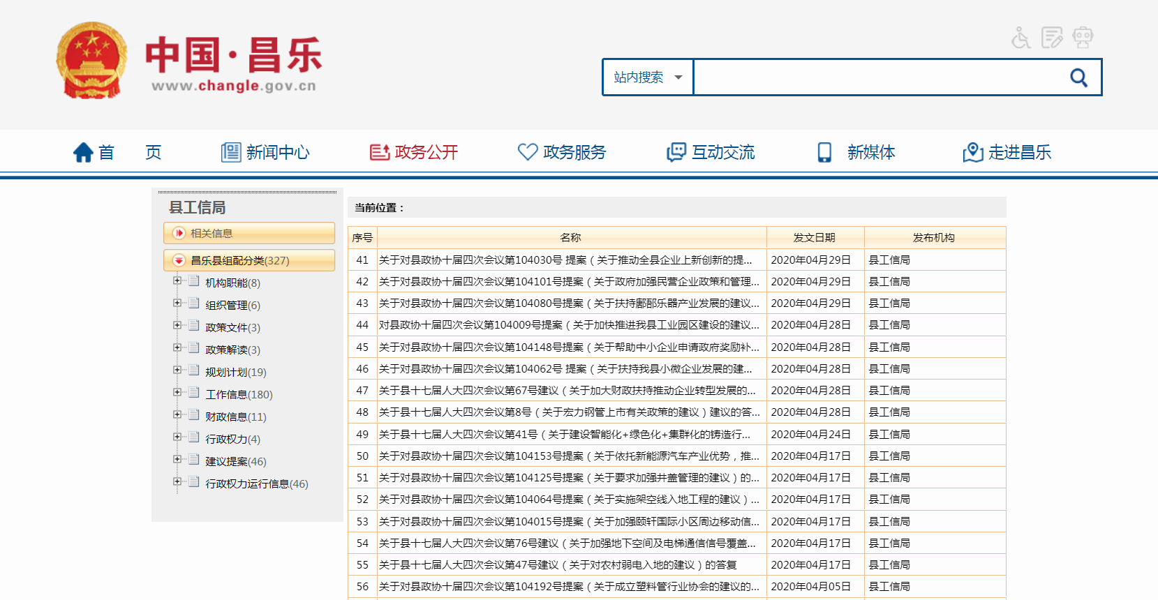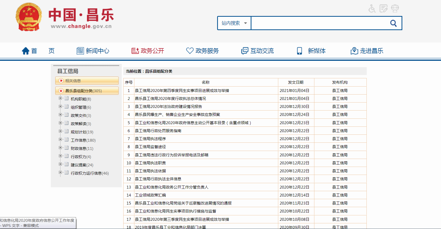 昌乐县工业和信息化局2020年政府信息公开工作年度报告
