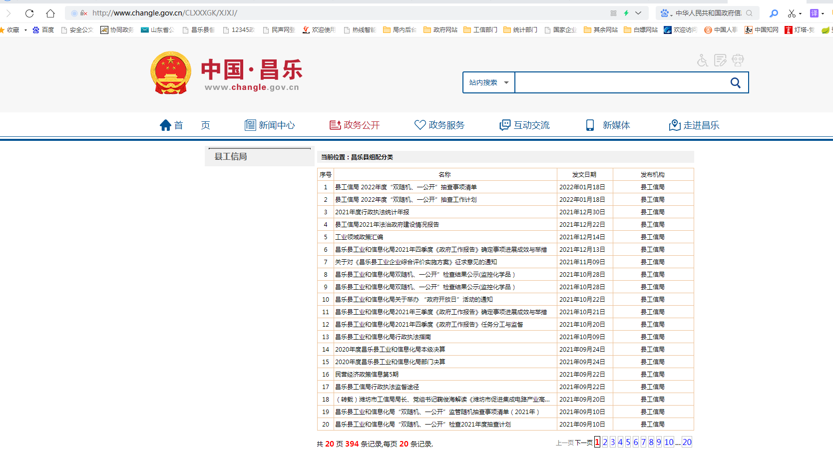 (四)政府信息公开平台建设情况。通过“中国·昌乐”网站主动公开政府部门信息,建立了“昌乐工信在线”公众号,通过公众号及时发布政策信息、工作情况等内容。