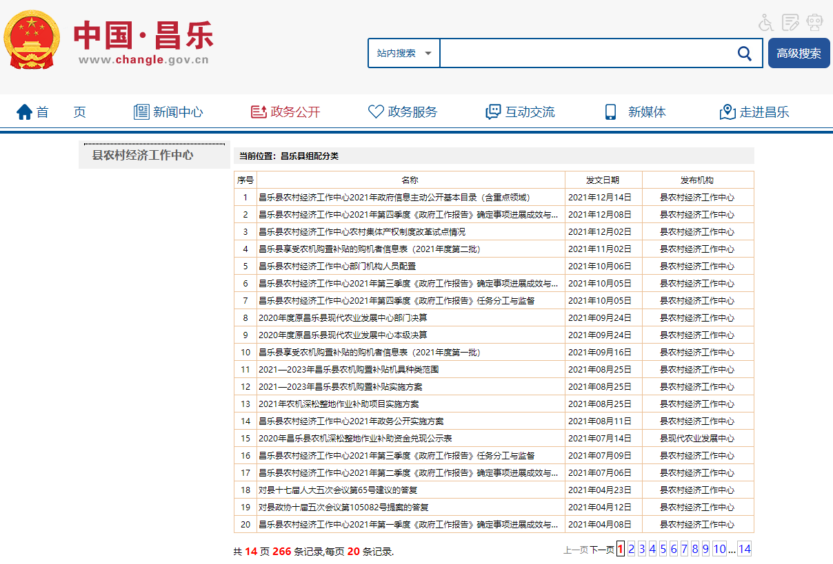 昌乐县农村经济工作中心2021年政府信息公开工作年度报告