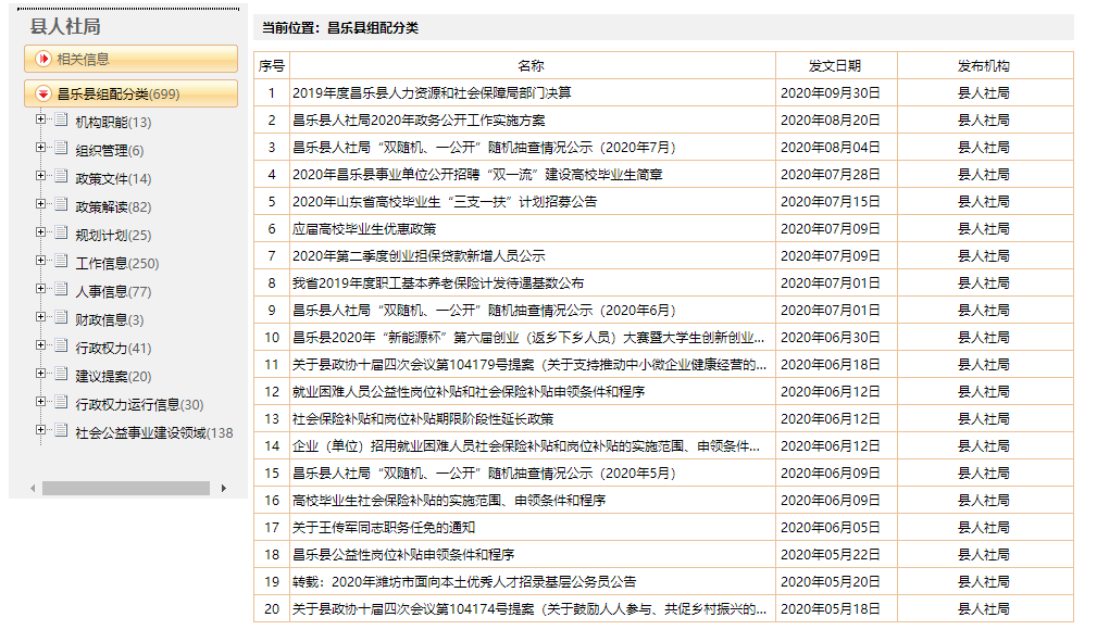 昌乐县人社局2020年政府信息公开工作年度报告