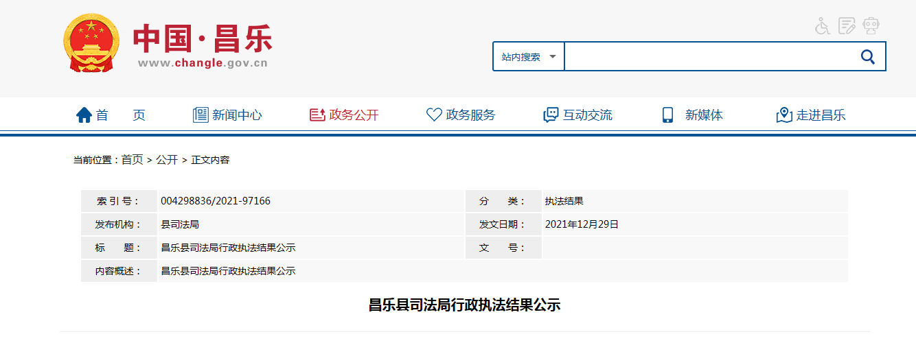 截至2021年12月31日,主动公开政府信息367条。其中,通过政府信息公开专栏主动公开政府信息87条;官方“两微”平台“昌乐普法”共发布信息280条。其中,概况信息4条,法规文件及解读2条,规范性文件备案及效力信息4条,行政执法及信用信息11条,其他重点领域信息3条,业务信息及其他类信息343条。