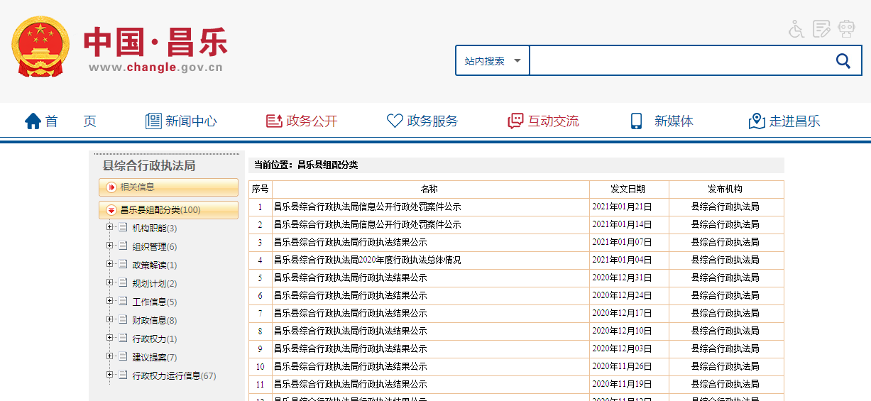 昌乐县综合行政执法局2020年政府信息公开工作年度报告