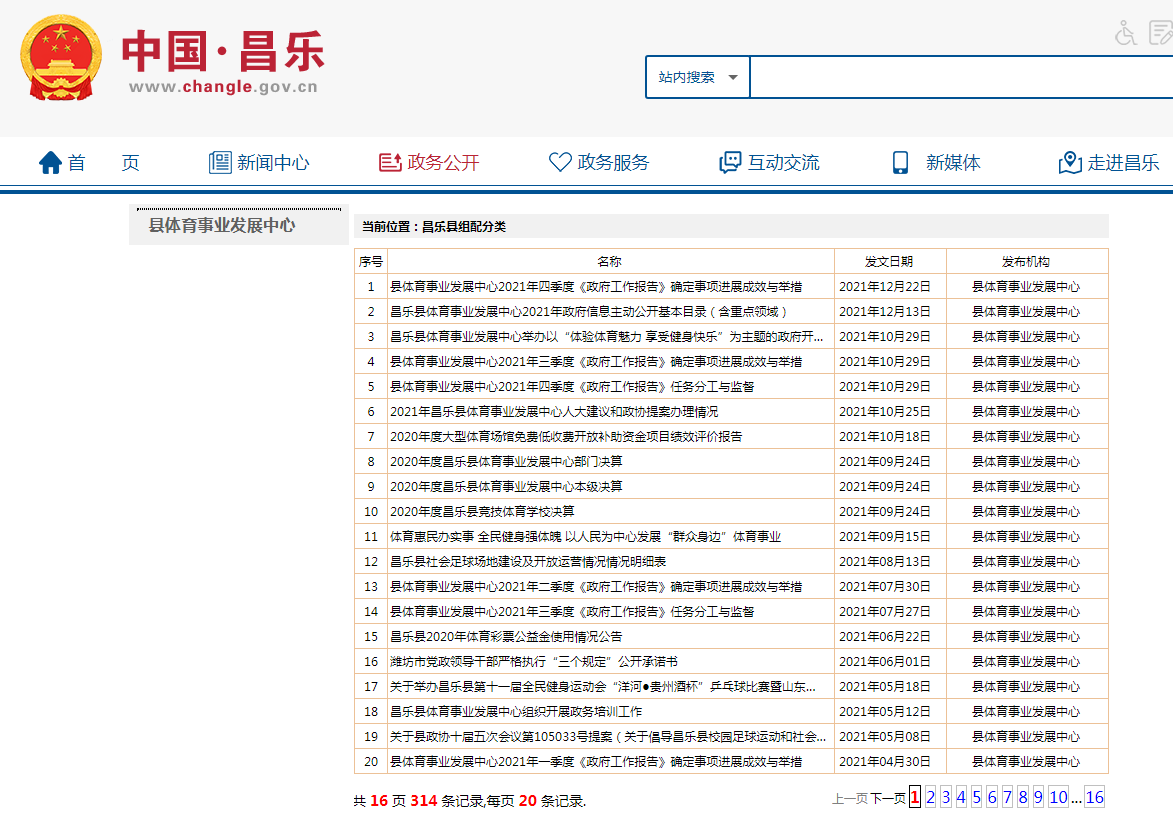 昌乐县体育事业发展中心2021年政府信息公开工作年度报告