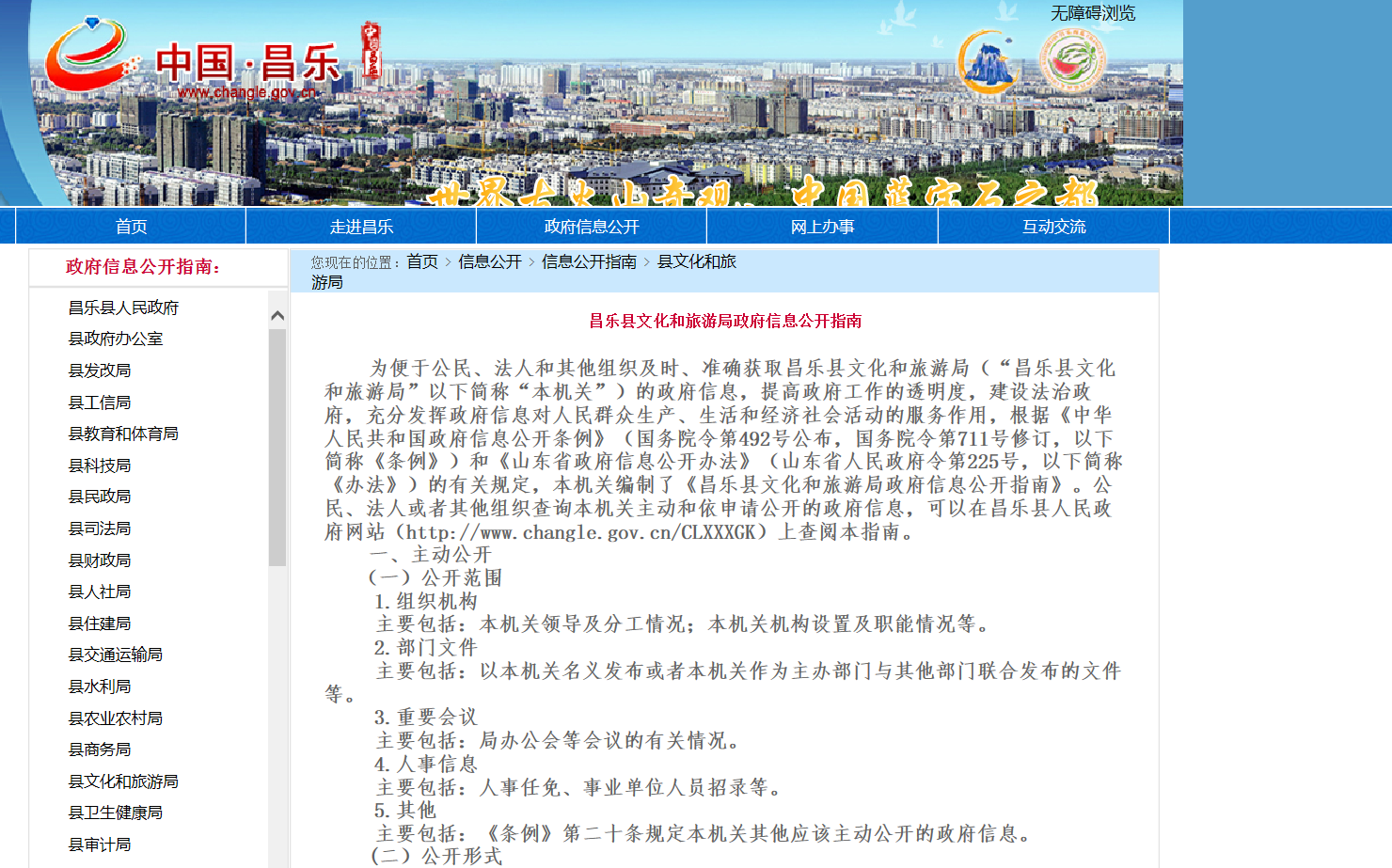 昌乐县文化和旅游局2019年政府信息公开工作年度报告