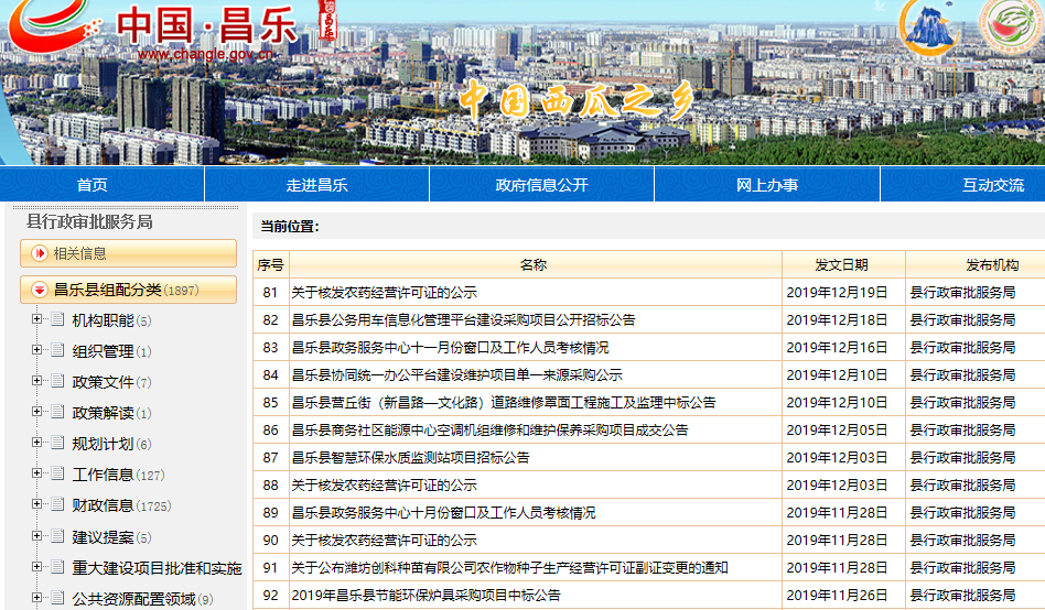 昌乐县行政审批服务局2019年政府信息公开工作年度报告