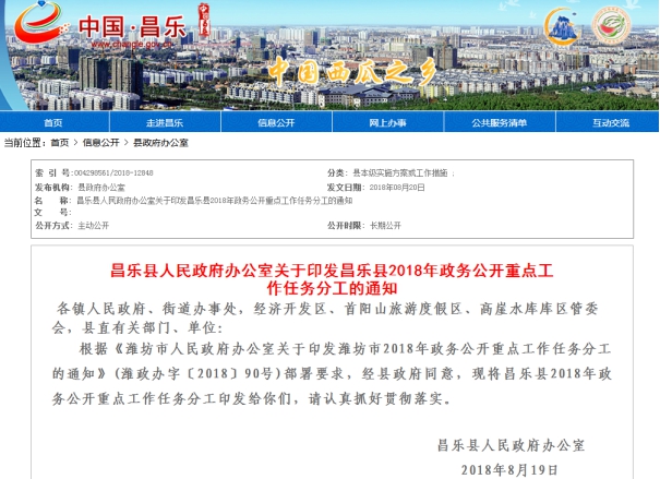 昌乐县人民政府2018年政府信息公开工作年度报告