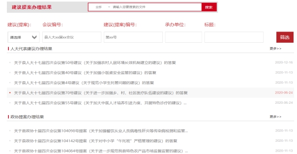 对县政府网站建议提案专题进行了优化,实现分类展示,搜索更加便捷。2020年,县政府办公室未承办人大代表建议和政协提案。