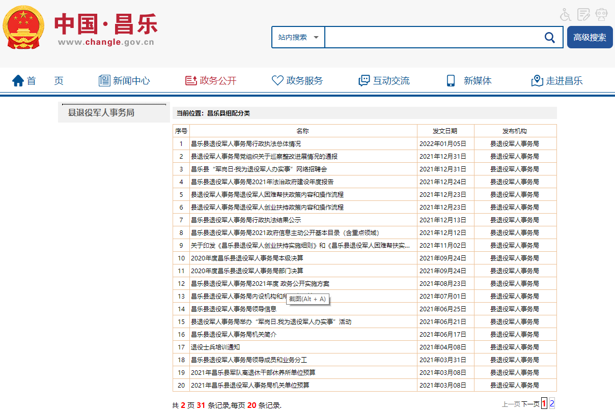 昌乐县退役军人事务局2021年政府信息公开工作年度报告