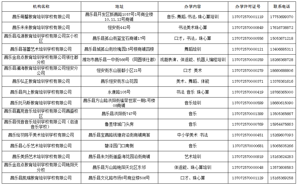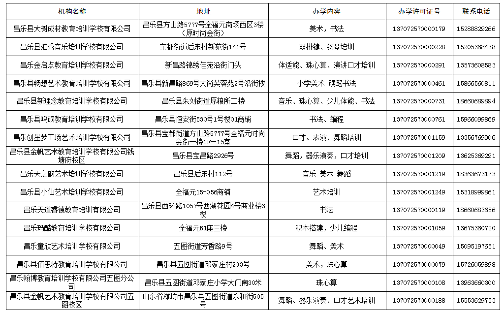 名单实行动态管理,定期发布,欢迎各位家长监督、举报培训机构的违规行为或非法培训机构,监督举报电话: 6272676 6221826
