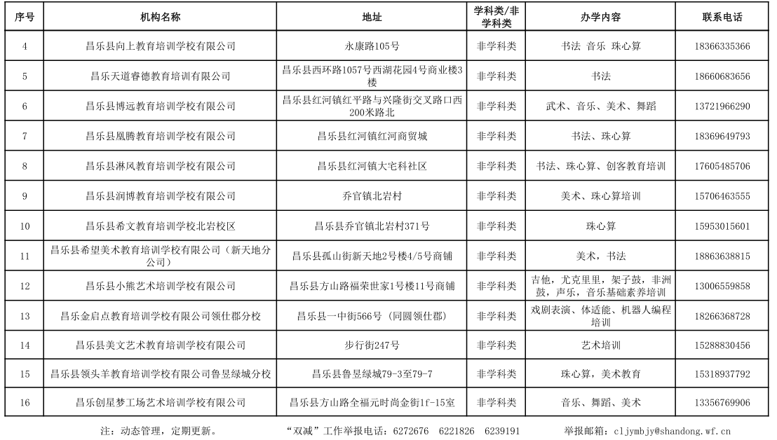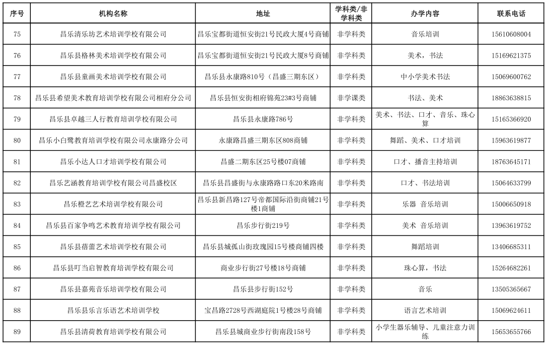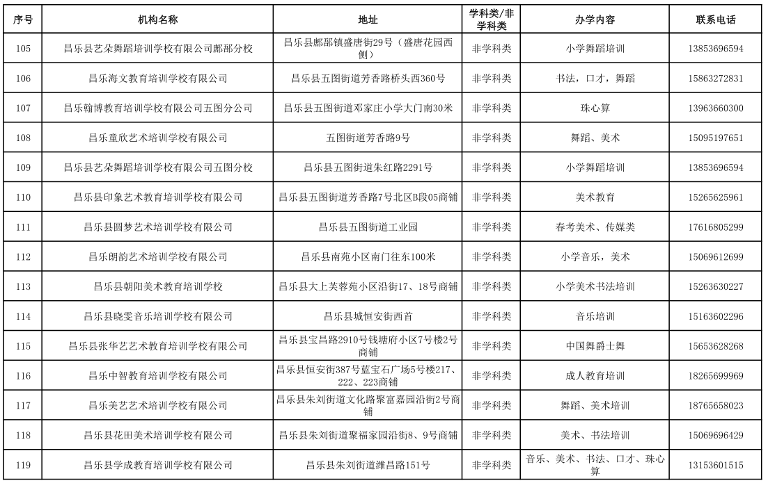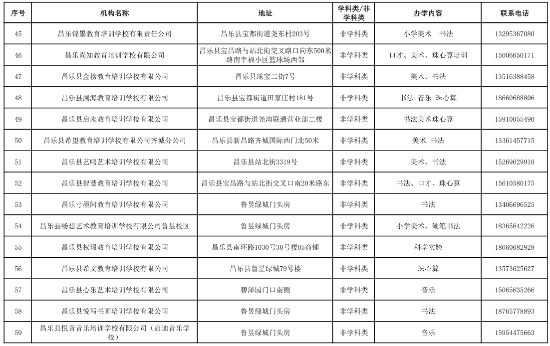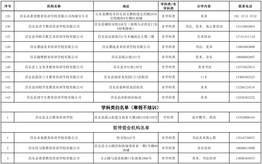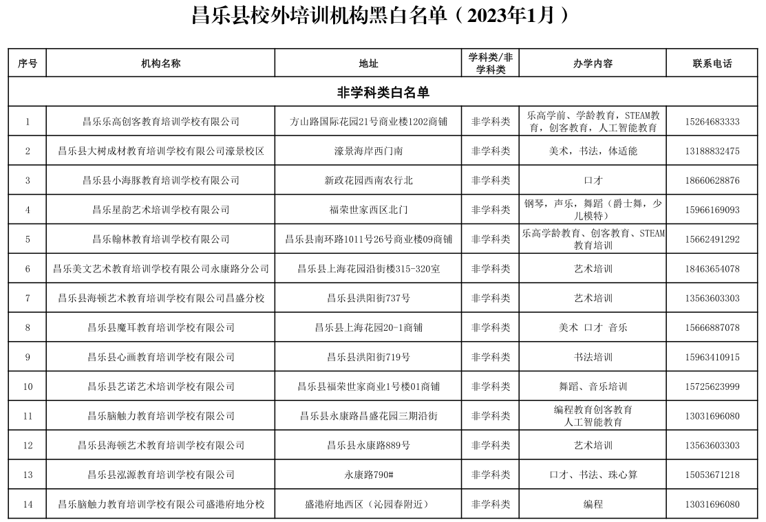 昌乐县校外培训机构黑白名单(2023年1月)