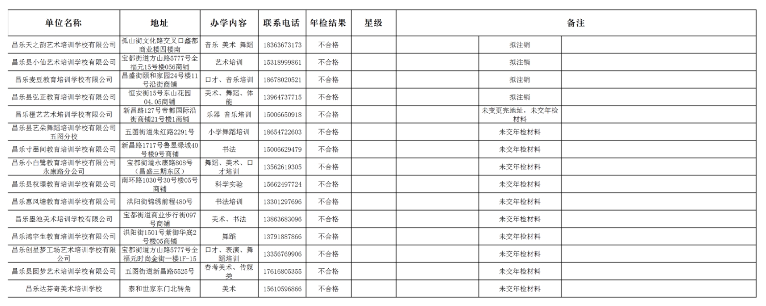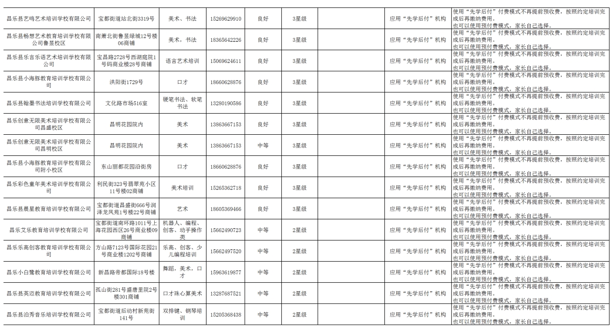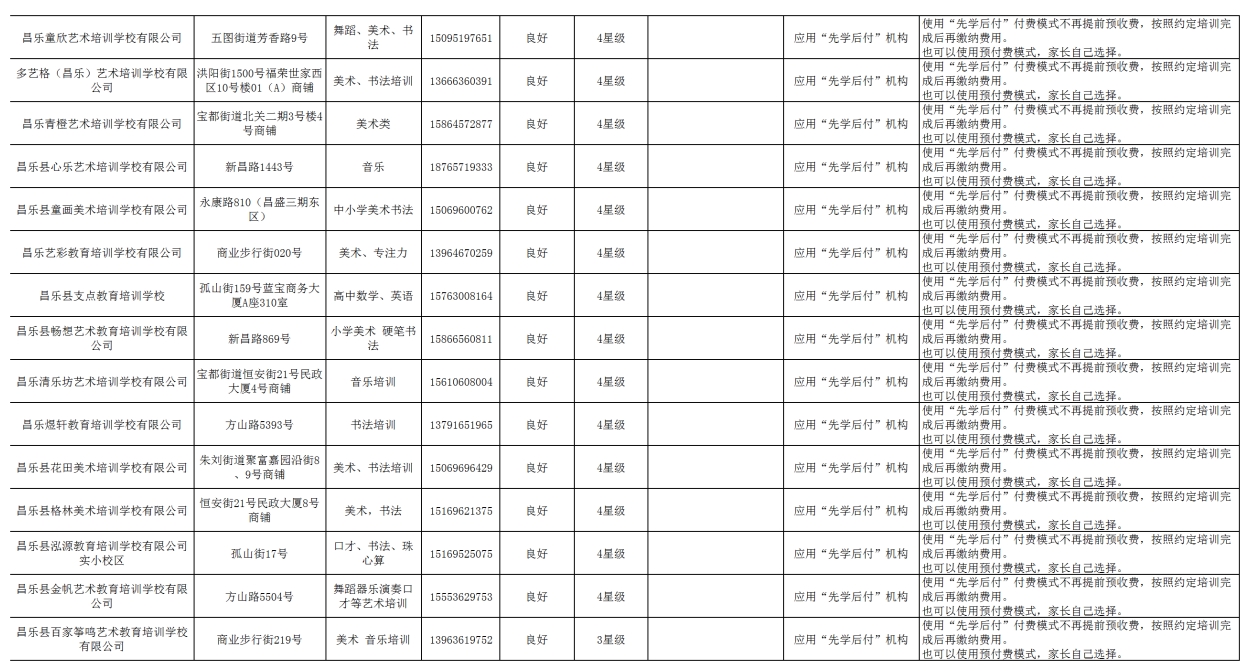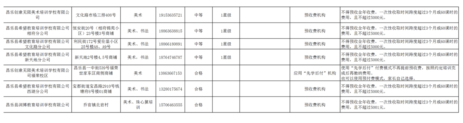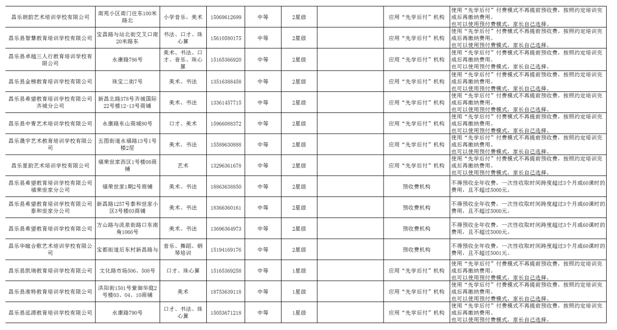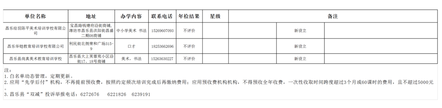 昌乐县校外培训机构黑白名单(2025年6月份)