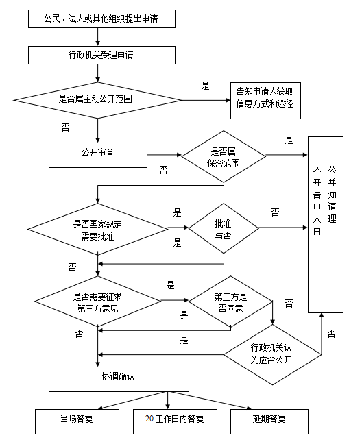 1.对于符合《条例》《办法》申请要求的,按《条例》第三十六条、《办法》第二十六条分别作出答复。